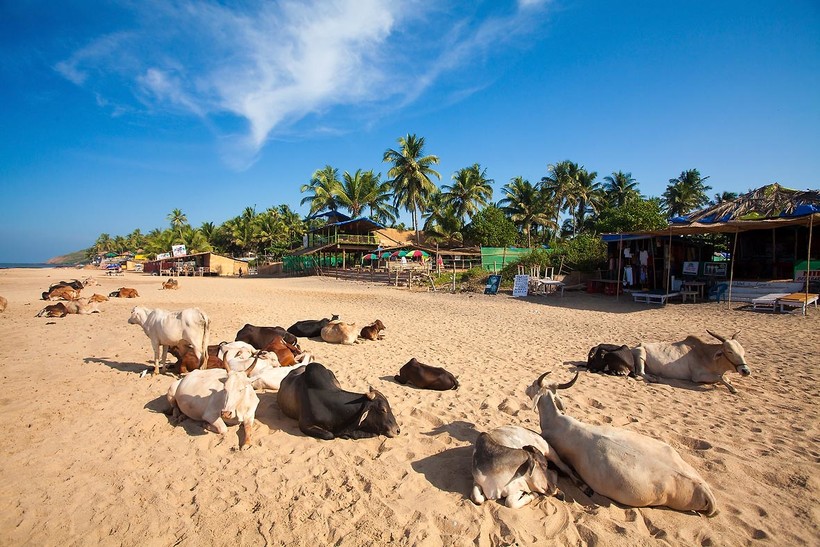 - Коровы — настоящие властители индийских земель. Гуляют во всех местностях, едят то, что им захочется, нежатся на пляже, согреваемые солнцем. Чем не рай для этих животных?