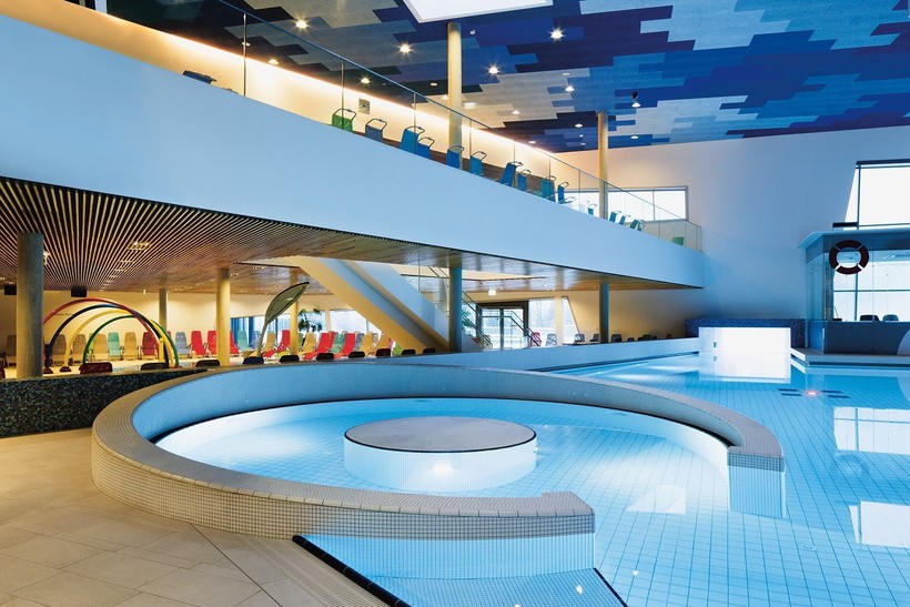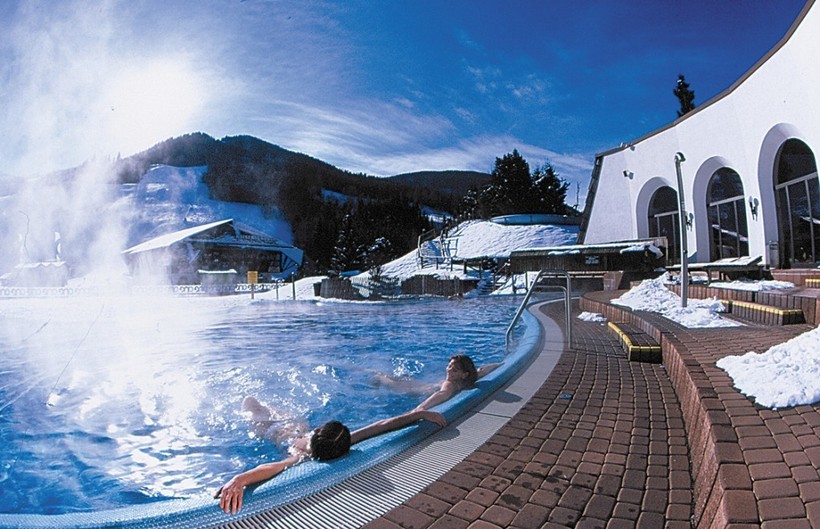 Устав от лыж, я отправилась в сауну и бассейн. Можно и косточки погреть, и панорамными видами насладиться.