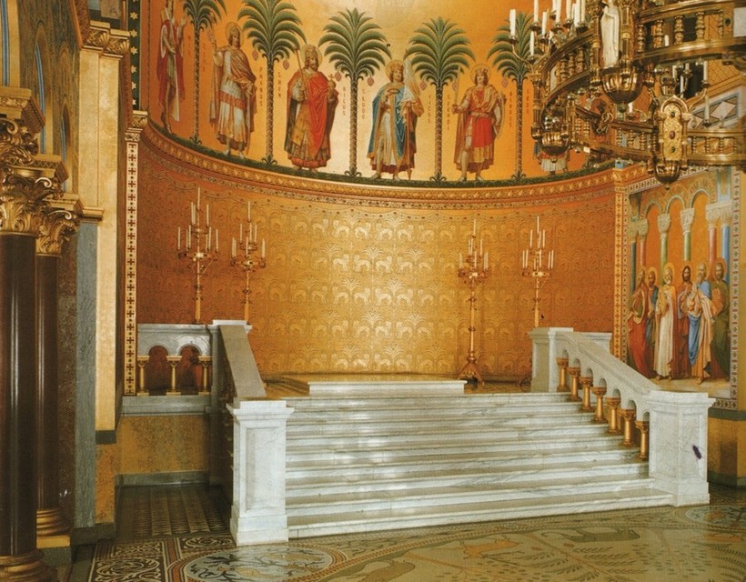 Тронный зал называется так условно, потому что трона там нет. Людвиг II умер когда замок не был достроен и трон не стали устанавливать за ненадобностью.
