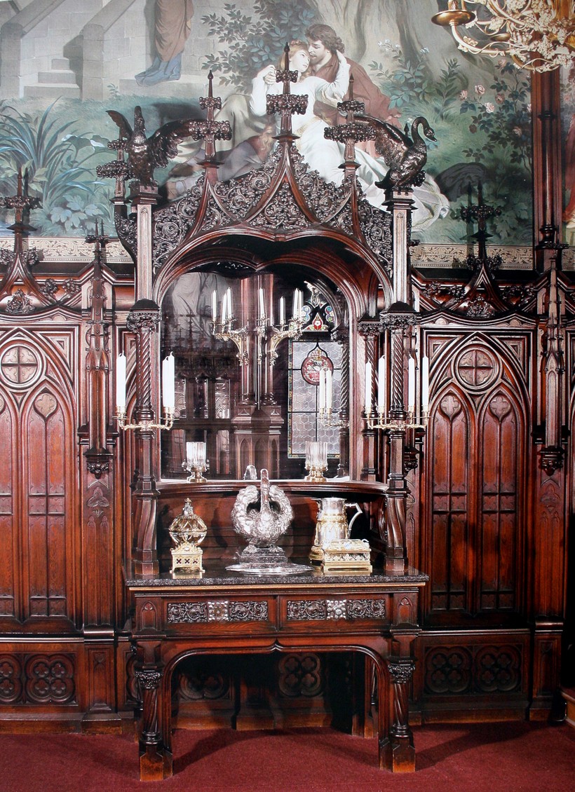 Этот замок знаком каждому с детства, потому что Дисней срисовал с него замок золушки, а после сделал логотипом всей компании. Знаменитый Нойшванштайн издалека кажется игрушечным, а изнутри и вовсе напоминает декорации к спектаклю или фильму. На самом деле это почти правда. Замок проектировали театральные художники Георг Дольман и Кристиан Янк по заказу короля Людвига II Баварского, который увлекался театром с детства. Помещения замка оформлены в соответствии с германскими легендами, а некоторые иллюстрируют оперы Вагнера. Людвиг II очень любил творчество этого композитора и поддерживал его.