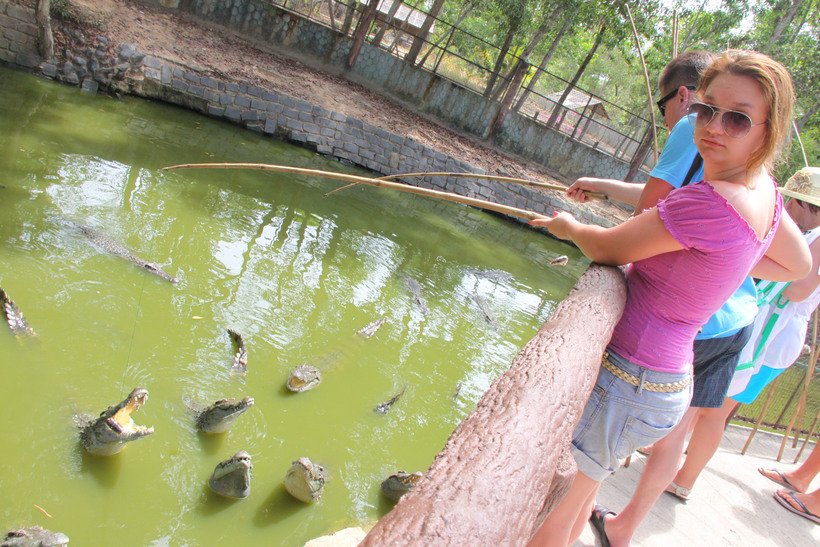 Интересное место – крокодиловая ферма. Здесь покормите с удочки голодных рептилий от мала до велика. Кстати, во Вьетнаме популярен самый дорогой кофе Лувак, его можно отведать тут и приобрести в сувенирных магазинчиках.