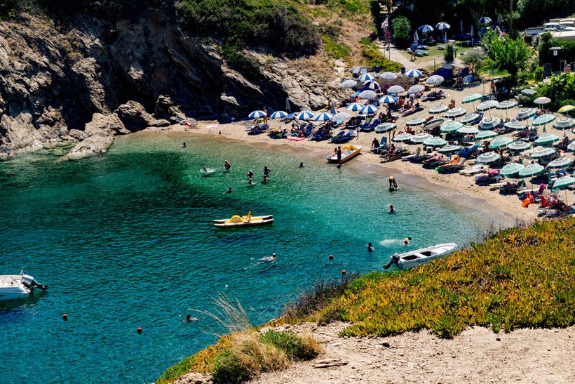 Погода солнечная, воздух прогрет до 25 градусов. Конечно, первым делом бежим купаться. Температура воды не больше 20 градусов. Для пляжного отдыха холодновато. Но нас, жителей средней полосы России, это не останавливает. Загораем, купаемся почти ежедневно. Досаждают порывистые ветра, два раза шел ливень. Особенно ветрено со стороны Эгейского моря.