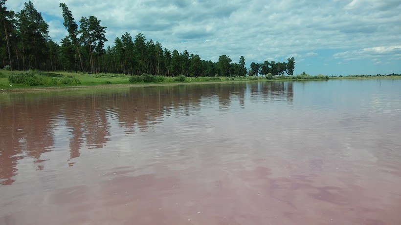Да и настроение такой необычный цвет озера поднимет отлично. А окрашивают его водоросли малинового цвета.
