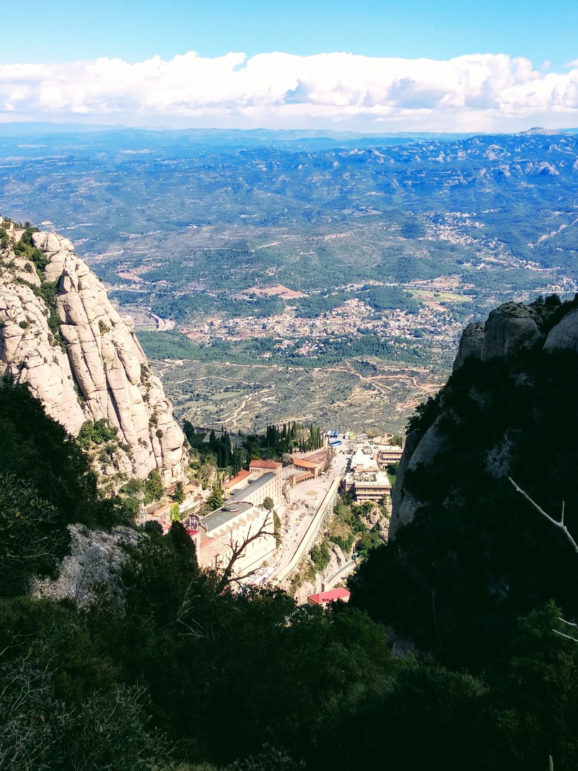 - Монастырь Монтсеррат — всего 50 километров от Барселоны и мы оказались на святом месте у подножия гор. Поднимались на фуникулёре на вершину чтобы запечатлеть красоту Каталонских земель, погоде была ясной, мы легко оделись, но весенняя куртка не была лишней. Столпотворения людей не было, возможно было сделать потрясающие фотографии.
