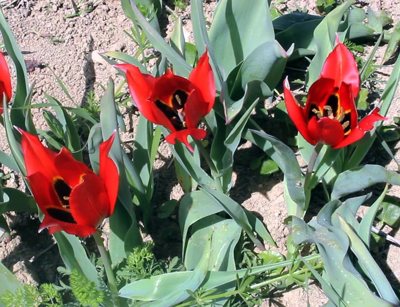 Но сначала о тюльпанах. Когда-то цветы выращивались на продажу заграницу, даже в Голландию. Сейчас тюльпановое поле небольшое, охраняется, рвать цветочки нельзя. Бутон имеет необычную форму – лепестки вытянутые, остренькие. Основной цвет красный, а середина черная. Мне больше по душе классические сорта.