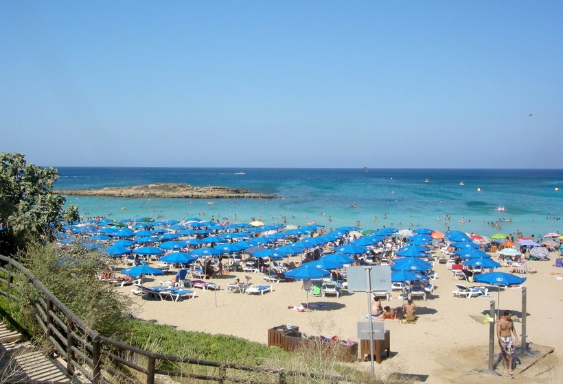 Мое сердце принадлежит Протарасу. В мае даже на Фиг Три бэй можно найти место. Кстати, входит в топ-10 лучших пляжей Европы. Душ, туалеты, кабинки, большая автостоянка присутствуют. Песок золотистый, мягкий, без камешков (что, правда, расстраивает деток). Заход пологий, безопасный. Благодаря расположению в небольшой бухте, ветра особо нет, волн тоже. Совсем рядом маленький островок, куда все любят плавать. Есть пункт проката катамаранов, бананов, к сезону устанавливают развлекательный водный парк. Загорать можно на своих полотенцах либо платных лежаках.
