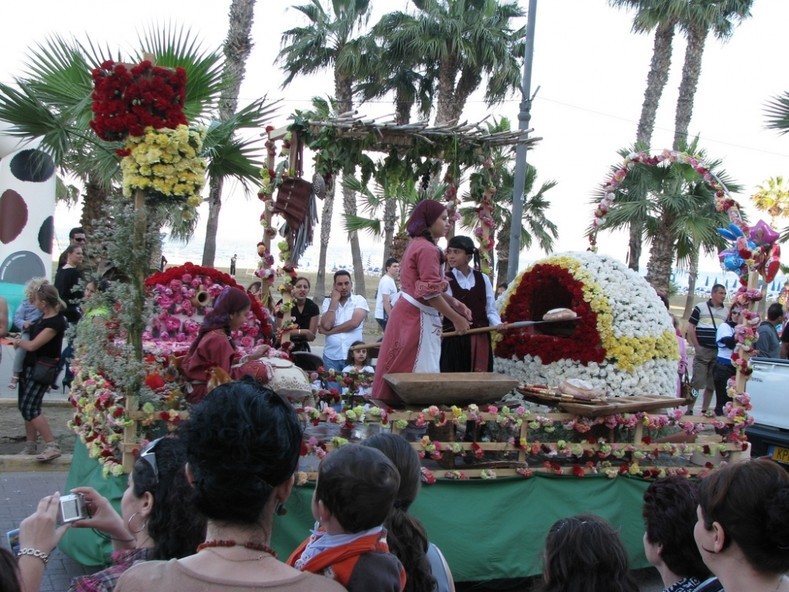 Но в Пафосе еще проходит карнавал, где участники шествуют на платформах разных форм, украшенных цветами. Девушки разгуливают с венками на голове и букетами в руках. Зрелище очень красивое и ярко пахнущее, аромат цветов повсюду. В это время организовываются музыкальные перфомансы, танцы, цветочная ярмарка.