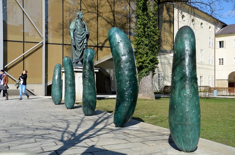 Кроме того, в австрийском Зальцбурге в 2011 году знаменитый Эрвин Вурм (как? вы не знаете Эрвина Вурма?) установил инсталляцию «Огурцы» практически в натуральную величину.