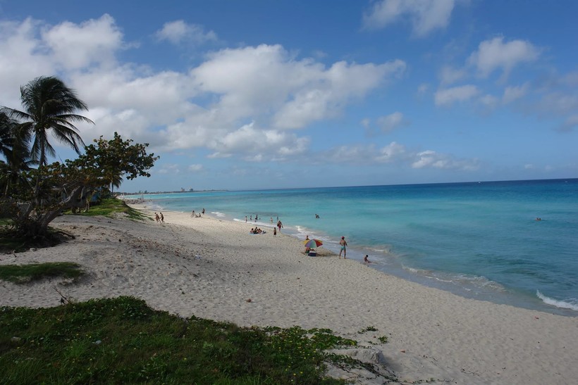 Погода великолепная, кубинцы сказали, что мы выбрали идеальную пору, поскольку с мая начнется сезон дождей, а март наоборот считается сухим. Если не знаете, когда ехать на Кубу, выбирайте раннюю весну, тем более погода располагает к пляжному отдыху и длительным экскурсиям. Столбик термометра держался в районе +28, вечером +20. С моря дул легкий ветер, влажность умеренная, духоты нет, поэтому высокие градусы переносились спокойно. Дождей в принципе нет, а если идут, то кратковременные и никак не помешают отдыху. А вот солнечные лучи все же коварные, поэтому солнцезащитный крем обязан стать верным спутником в путешествии, я его забыла, к вечеру была, как помидор.