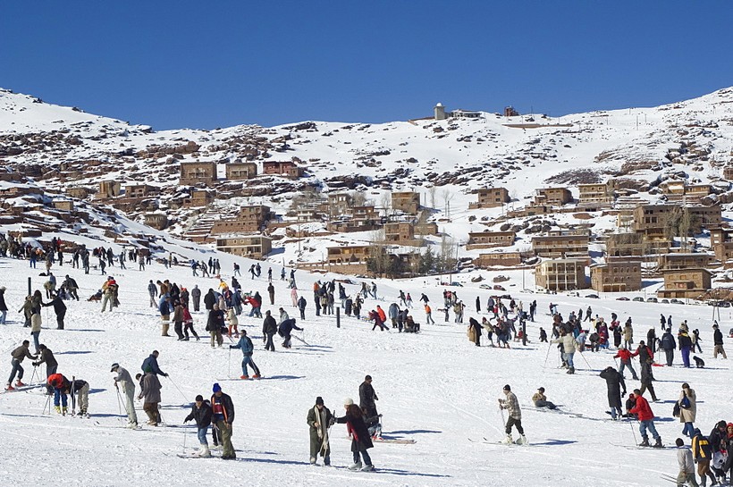 Зимние курорты, серьезно? Да. Декабрь отлично подходит для лыж, выпадает снег. Горнолыжный сезон короткий. "Европа лучше", подумаете вы. Окажетесь правы. Зато какова экзотика! Укаймеден на Высоком Атласе — прекрасная спортивная зона. Сильные перепады высот, сильный ветер, отлично подготовленная спортивная база. Снежочек бедноват, полон проплешин, ратрак пытается размазать ровным слоем. Ничего, кто пожелает — покатается. Лыжи-палки обойдутся примерно 2000 рублей/день.