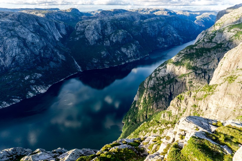 Хорошим занятием станут кемпинг и пешие экскурсии с видами на фьорды, которые в середине лета покрыты густой зеленью.