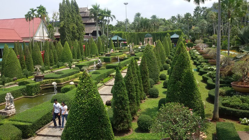 В конце отдыха организовали прогулку в парке Нонг Нуч, поехали самостоятельно на такси — это за городом. Территория огромная, чего там только нет, осматривали целый день. Как я поняла, общая концепция проекта — уменьшенные копии мировых достопримечательностей. Со всех сторон окружают вереницы гипсовых фигурок экзотических животных и высокие деревья. Обзор лучше делать со смотровых площадок вверху.