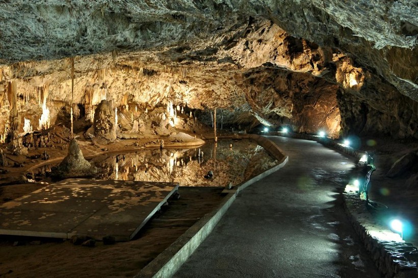 Залы, тоннели, озёра соединены великолепно оборудованными пешеходными дорожками, движение по которым – одно удовольствие. Рядом с пещерами стоит замок Перштейн, ставший декорацией множества кинофильмов.