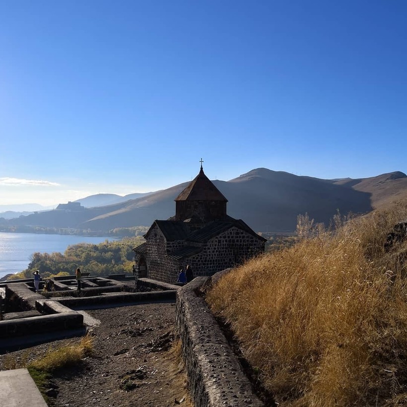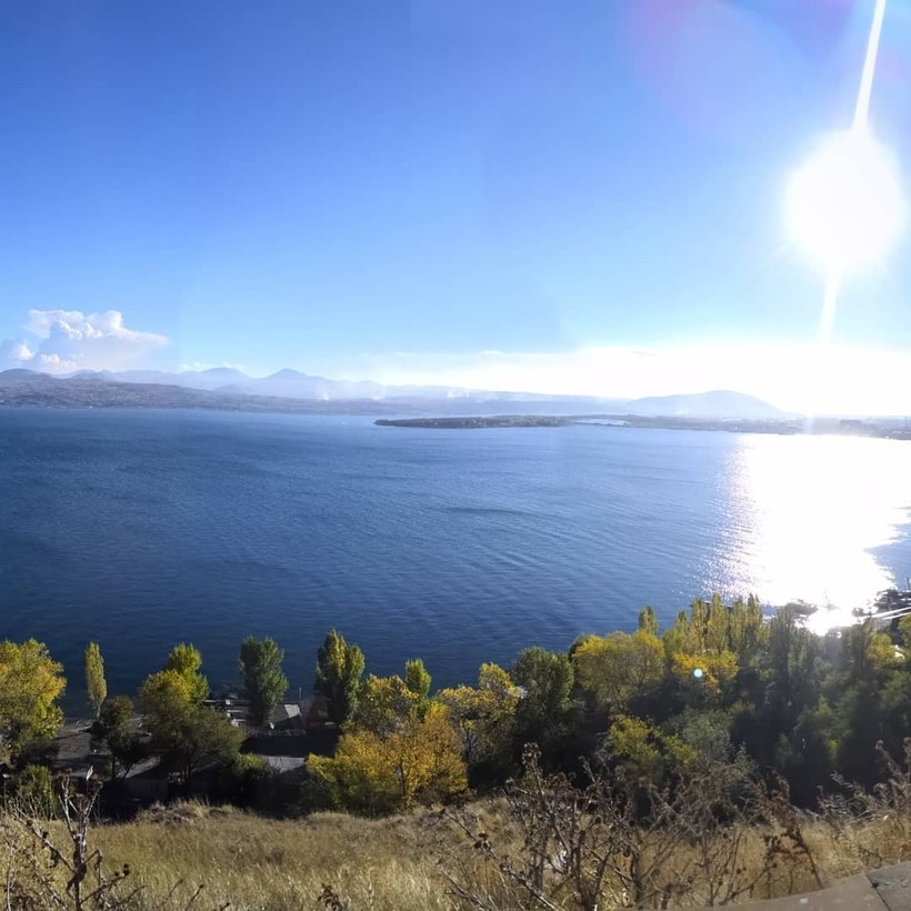 Запечатлели прекрасные вида Озера Севан – так называемого "Армянского моря". Оно неподходящее для купания, температура воды здесь всего лишь около 7°C, погода этого региона больше напомнила наш март. Хоть днём было солнечно, воздух прогревался не более, чем до 15°C, дули сильные ветра.