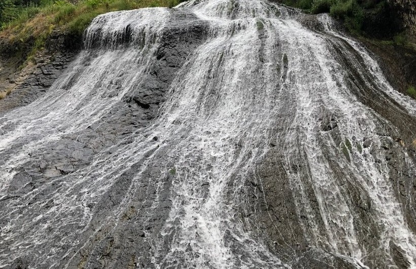 Больше всего впечатлений получил от прогулки по бетонной дорожке, идущей вдоль ущелья. Вокруг слоистые породы, море зелени, древние пещеры. Сам по себе водопад довольно мощный, из него можно пить воду.