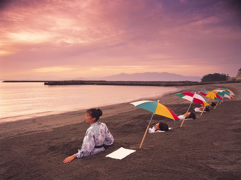 - Ибусуки. Место, где меня зарыли по самую шею в песочек, вытерпела недолго. Термальные источники находятся довольно близко от поверхности земли, поэтому песок на этом побережье горячий, обладает целебным эффектом.