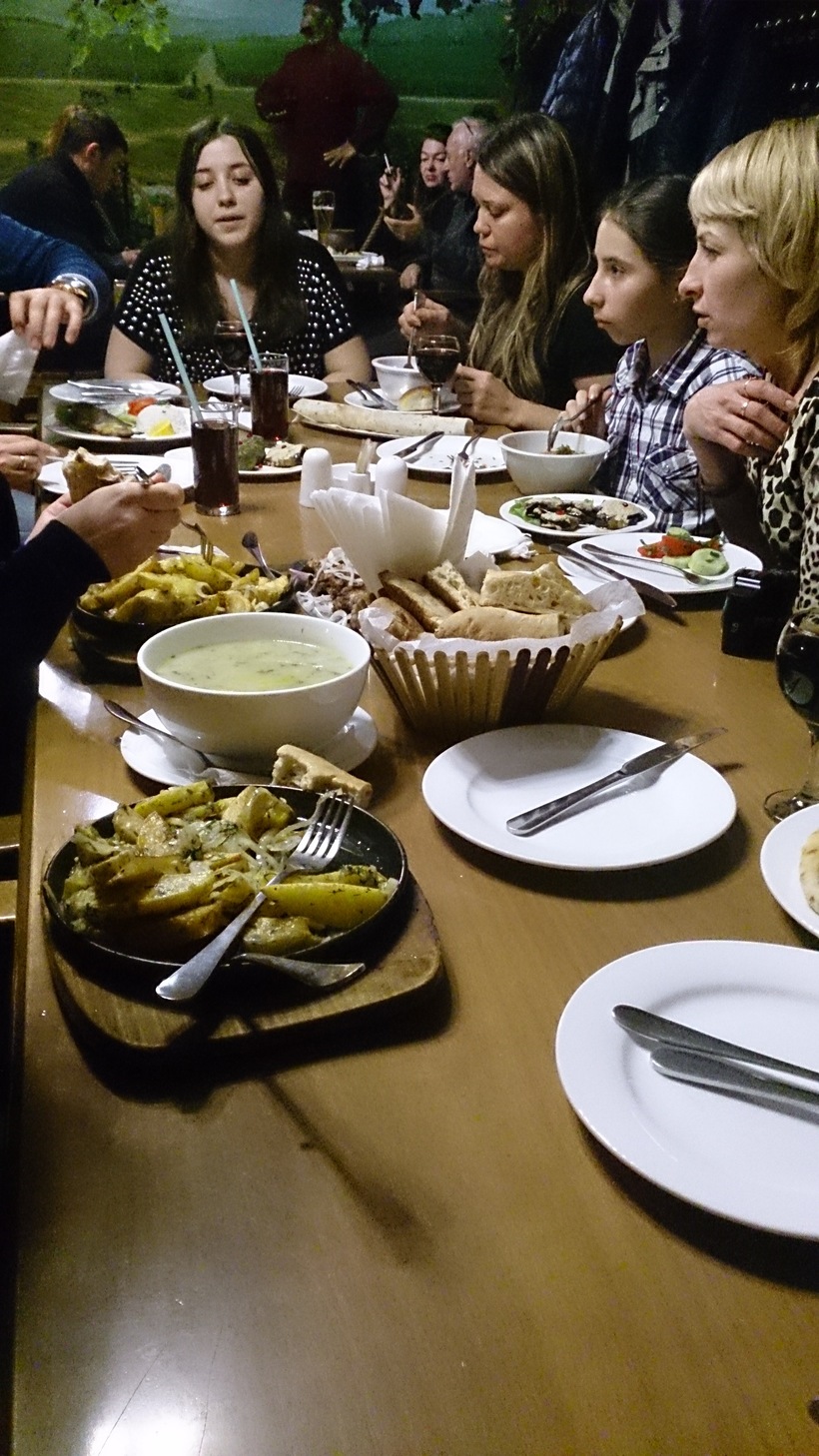 Грузинский народ очень гостеприимный, общительный и щедрый. Любой прохожий с радостью поможет и подскажет как добраться куда нужно, почти все люди среднего возраста знают русский язык, молодежь хуже знает.