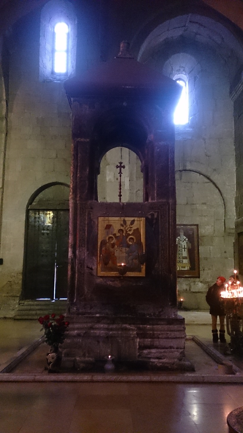 Очень красивый город Мцхета - древняя столица Грузии, в которой находится храм Светицховели с хитоном Христа. Так как он находится в горах, то температура здесь ниже и может срываться дождь или мокрый снег, поэтому лучше вооружиться зонтом и потеплее одеться, возле монастыря Джвари на вершине горы дует очень холодный ветер.