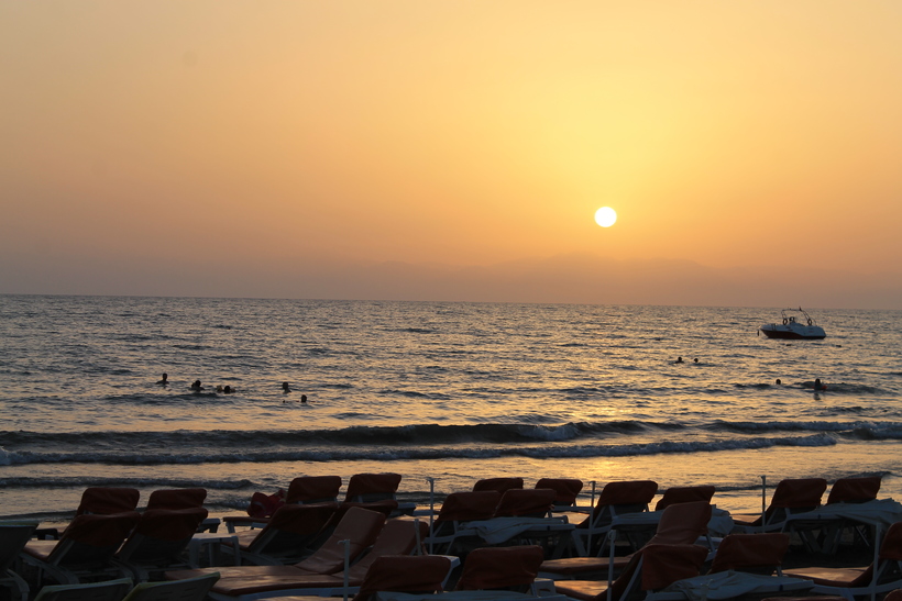 Турецкий берег встретил теплым, но не жгучим солнышком, легким ветерком, ласковым морем. Сезон подходил к концу, туристов гораздо меньше, чем летом. Радовал относительно свободный пляж. Меня поразило удивительное состояние погоды. Казалось, температура держится примерно одинаковая целыми сутками. Нет ужасных душно-жарких полуденных часов или холодных ночей. Все время отдыха комфортная погода без колебаний. Море в сентябре дарило хорошее настроение – вода теплейшая даже ранним утром. Первый заплыв в 6 утра давался легко, заряжал позитивом на целый день.