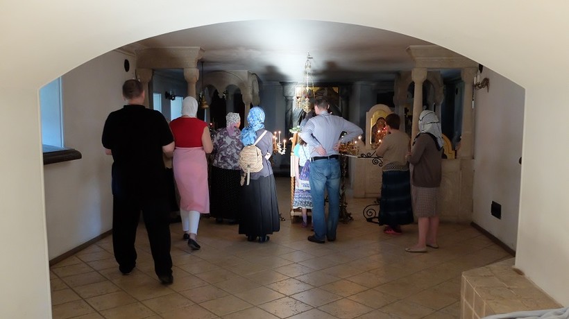 Центр "Нового Иерусалима" - Воскресенская церковь (или Воскресенский скит), имеет две части: верхнюю и нижнюю, в которой иммитирован Храм Гроба Господня.