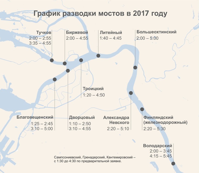 Принимая во внимание печальный папин опыт, советую внимательно изучить график развода и схему расположения мостов перед планированием своей экскурсионной программы.