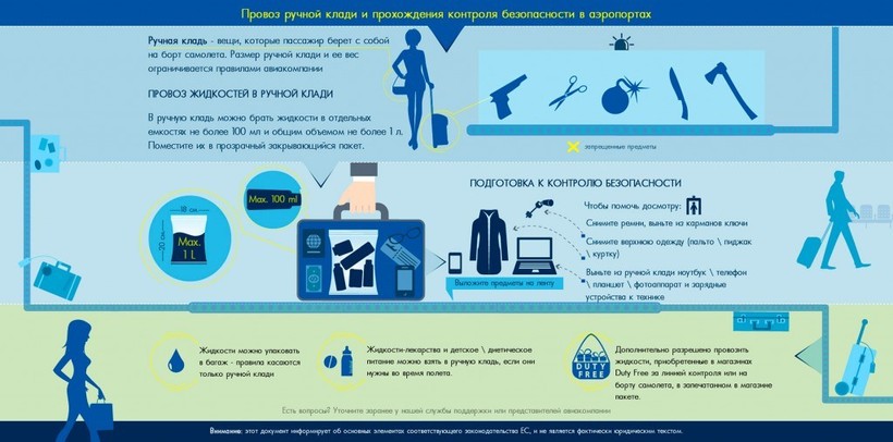 - вынуть из ручной клади и переложить в багаж все предметы, которые нельзя перевозить в ручной клади.