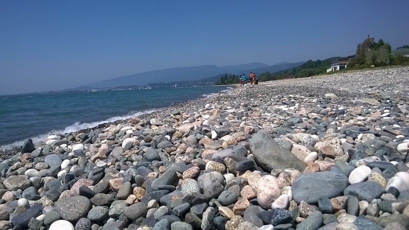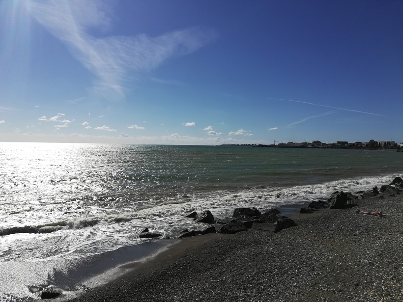Вода холоднючая, +12. Не представляю, как можно купаться, но один смельчак отважился. Я замерзала от одного взгляда на него. На море одевайтесь потеплее, в момент моей прогулки дул пронизывающий ветер, я немного простыла.