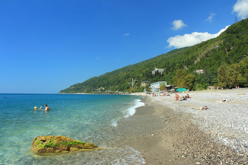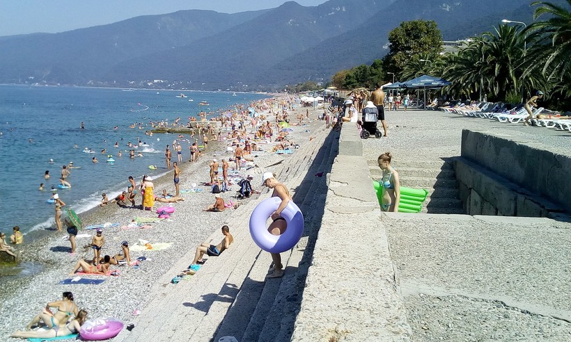 Если сравнивать курорты Абхазии с соседним Краснодарским регионом, тут меньше туристов, есть шанс, что сможете спокойно валяться на пляже, раскинувшись звездой.