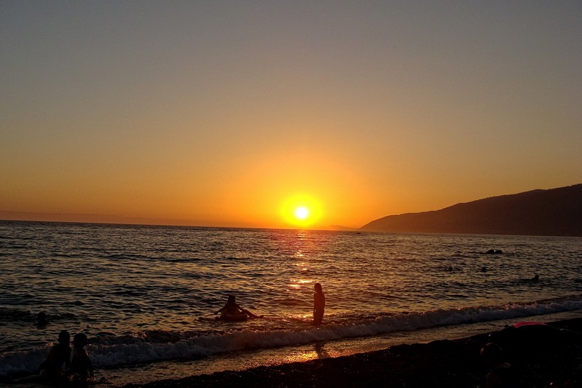 Людей меньше, чем летом. Пляжи бесплатные. Вода теплее 25 градусов. Днём купались и загорали. Однако с середины сентября море уже стало штормить. К вечеру с гор сходит холодный воздух. Температура опускается до 15 градусов и ниже. Порой хотелось надеть кофту, что-нибудь накинуть на себя.