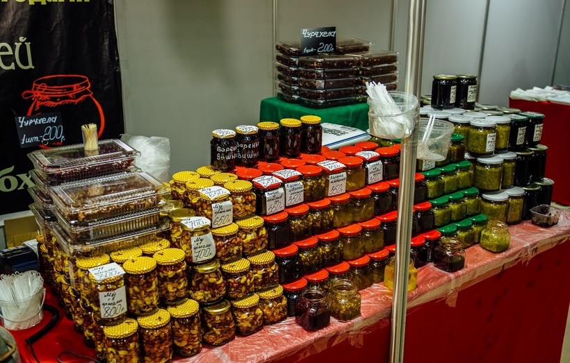 Можно купить почти все фрукты, которые растут на Кавказе. К этому сроку они поспевают, кроме хурмы и гранатов. Цены на инжир, персики, ежевику показались просто смешными. Покупать их ходили на маленький местный базарчик. Нас научили приходить рано утром, в 6 часов. Первым покупателям – скидка. Понравилось покупать: