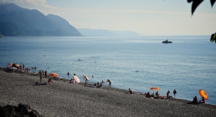 В сентябре в Абхазии уже достаточно тепло, чтобы позагорать.