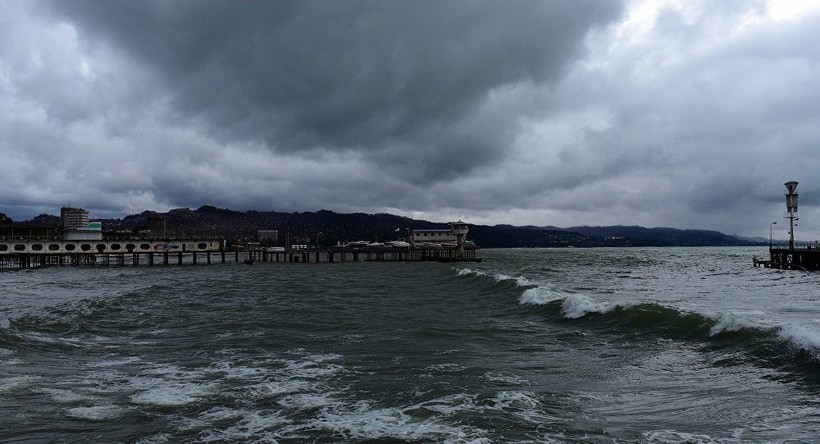 Погода — жуть. Постоянные ледяные ливни, лужи по колено, на дорогах грязное месиво (асфальта-то почти нет). Ужасная влажность, сырость. Температура воздуха не поднималась выше 0 градусов. Приехала я сюда в меховом зимнем плаще, который выдерживает сибирские морозы, но все равно иногда замерзала. Прихваченный зонт мне не помогал: его сдувало, выгибало ветром. Пришлось купить дождевик и заворачиваться в него с головы до пят, зато ходила сухой. Если вам придется посетить Абхазию в первом месяце зимы, обязательно берите резиновые сапоги, желательно до колен: так вода не затечет. А во внутрь непременно наденьте теплые носки. Главная абхазская достопримечательность — море — радовало только издалека: сильнейший шторм и высоченные волны, хотя это завораживающее зрелище!