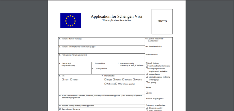 Первым, что вы увидите - это место для фотографии, которое можно вклеить заранее. Далее идут пункты с вашими персональными данными. Первые девять пунктов касаются идентификации личности. Десятый пункт заполняем, если заявитель - несовершеннолетний. Далее указываете идентификационный номер, если вы его имеете.