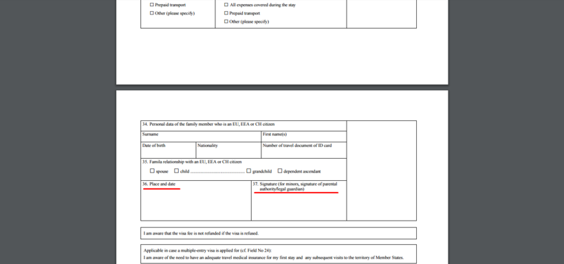 С двенадцатого по шестнадцатый пункт указываете информацию, которая касается загранпаспорта. Следующим семнадцатым пунктом есть поле для написания вашего адреса и номера телефона. До 29 пункта следует ставить отметки в предложенных вариантах ответов. Далее указываете запланированную дату въезда / выезда (обычно следует смотреть по приглашению и категории визы). И, все последующие пункты требуют информацию о стороне, которая вас приглашает. Последнее, что вы заполняете - это 36 и 37 пункты, где ставите подпись, место подачи документов и дату.