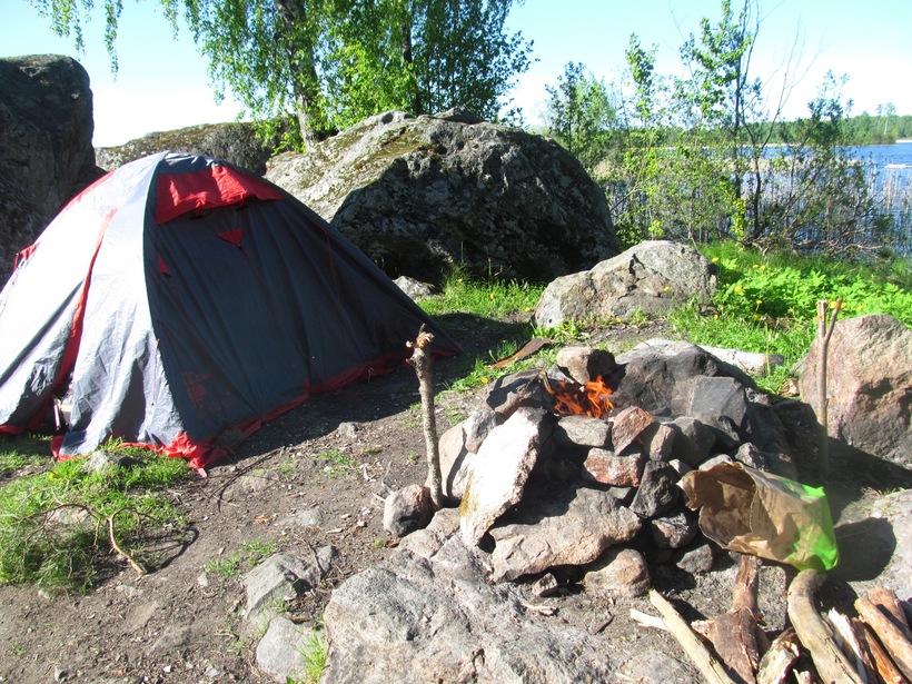 Так как на озере огромное количество островков, то можно на лодках доплыть до желаемого и выбрать приглянувшийся и незаселенный.