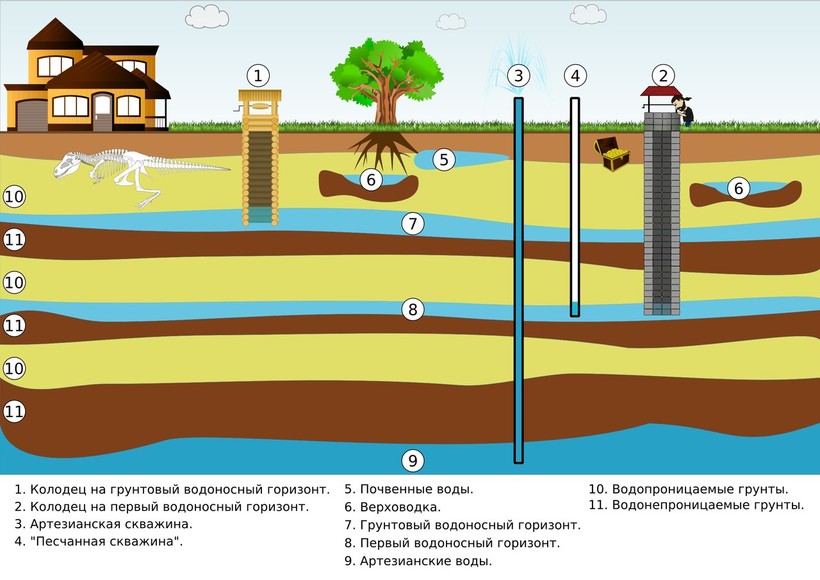 Как уже стало понятно, источники вод — осадки и водяные пары. Вторым компонентом в этой механизме формирования потоков является почва, которая имеет разнообразную слоистую структуру. Она определяет условия (положение) залегания подземных вод.