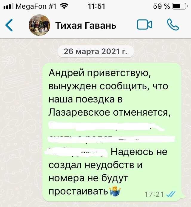 Пренебрежительным тоном оставил мне голосовое сообщение, дословно: "Ты наверное прикалываешься, я тебе хочу сказать, я там куча народа, кому просто по отказывал, я с 13 числа людям забронировал, чтоб они приехали, уже куча народа кому по отказал. Вот это вы даете."