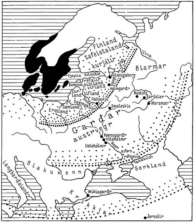 Столицей Россейского или, как они называли Гардарикского государства, викинги считали Новгород. Для них эти территории были привлекательными как торговые пути. Именно через Гардарикию викинги могли торговать и сотрудничать с Арабским халифатом. Путь этот был длинным, трудным и непростым, но есть ли что трудное для закалённых в северных морях воинов. По Неве, в Ладогу, затем в Волхов, озеро Ильмень и, наконец, по Ловати. Потом начинался один из самых трудных участков – перетаскивание судов волоком к Волге. И уже по Волге в Каспийское море.