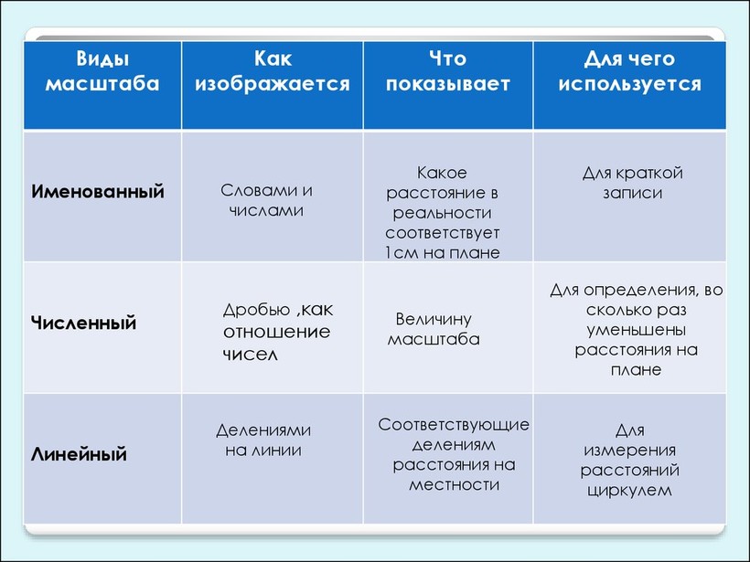 Масштабы бывают трёх видов: именованный, численный и линейный.