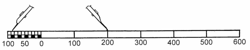 Особенностью данного масштаба является то, что измерятся он с помощью циркуля. Считать нужно, измеряя требуемое расстояние по частям.