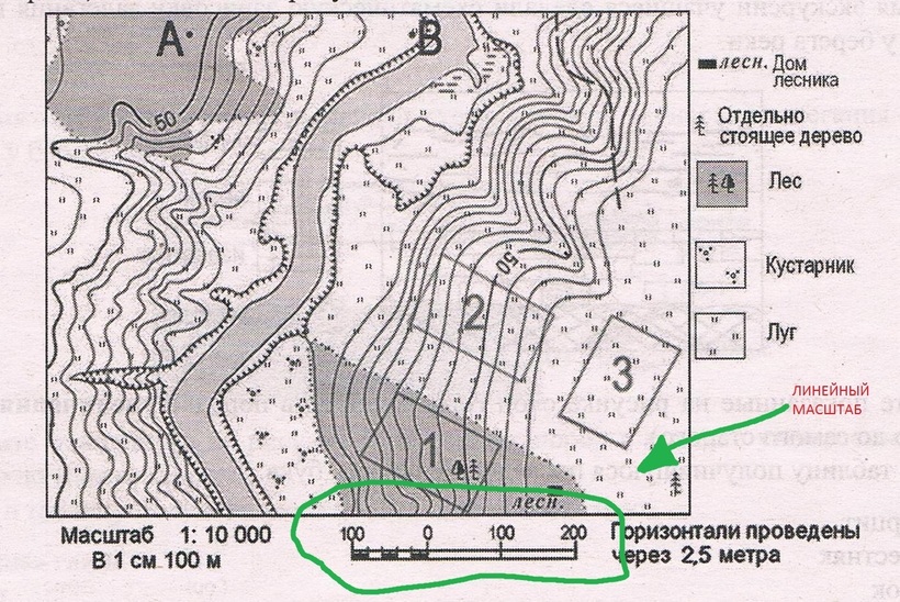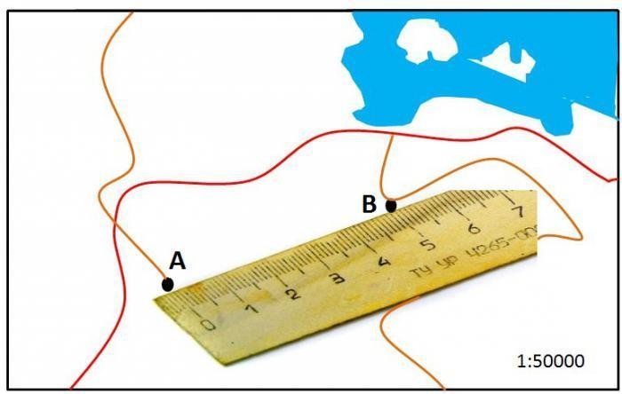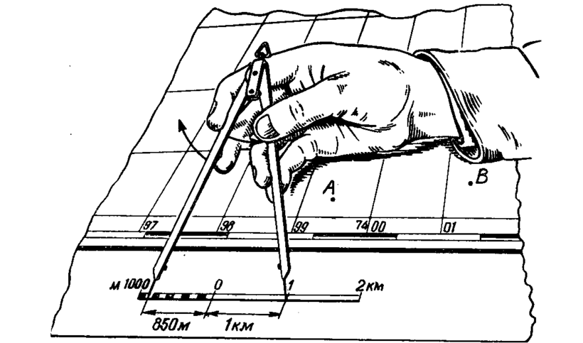 В этом случае расстояние на самой карте измеряется при помощи линейки или циркуля, а после переносится на линейную шкалу, чтобы узнать истинные расстояния на участке. То есть, вычисления не понадобятся.