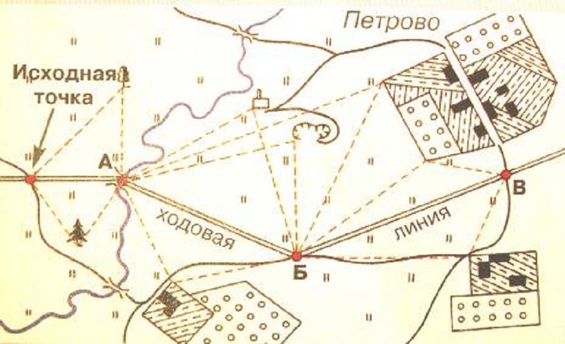 В школе мы начинали с правильного определения азимутов. После приступали к следующему этапу — определению расстояния на местности. Самый простой способ определения расстояния — шагами. Попробуйте пройти стометровку и подсчитать шаги. Важно помнить — скорость хода должна быть средней. Далее приступали непосредственно к глазомерной съемке. Начинали с коллективного прохождения маршрута. Главные измерения при проведении глазомерной съемки местности сводили к определению направлений основных дорог, то есть азимутов этих направлений и расстояний между ориентирами. Далее мы отправлялись по произвольному маршруту. Результаты всех измерений нас просили занести либо в рабочую таблицу, либо на черновик будущего плана местности.