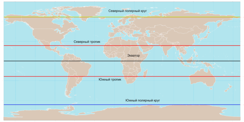 Линии имеют и другие названия. Так, тропик Северный порой именуют тропиком Рака, а Южный — Козерога.