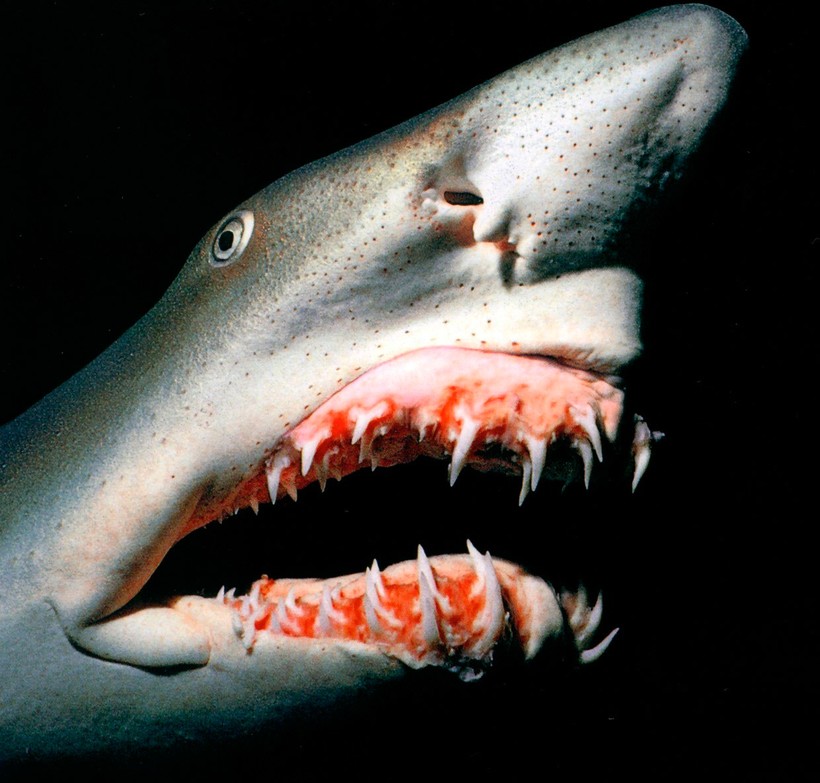 - Акула-домовой — очень редкая акула с характерным выростом на лбу и двумя рядами загнутых внутрь острых зубов, живет на глубине.