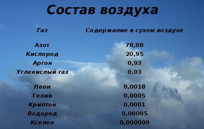 Существует распространенное мнение о том, что кислород - основа воздушной массы, однако, это не так. В состав воздуха входят такие газы, как: