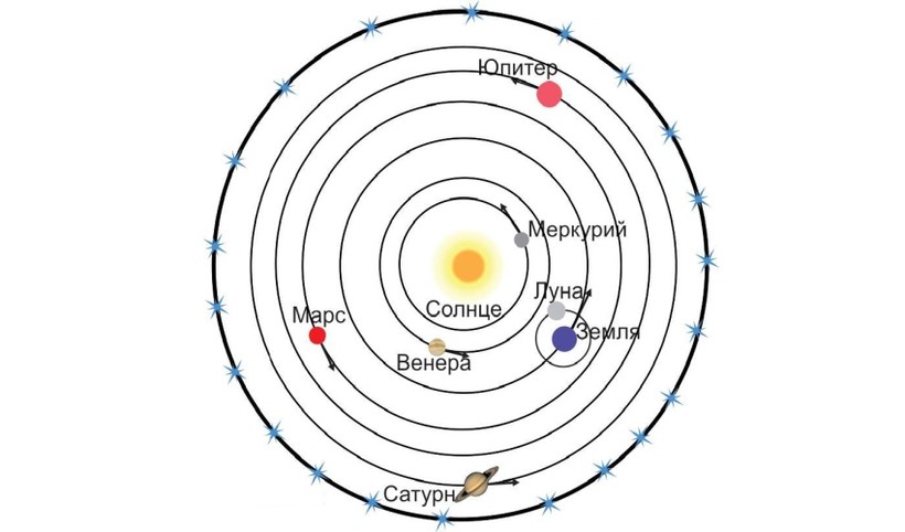 Согласно учению Коперника, Земля и еще 4 известных в то время планеты вращаются вокруг Солнца (на древнегреческом - "гелиос"), а другие звезды находятся на очень большом расстоянии от нас. Это учение позволило объяснить все траектории движения планет, смену времен суток и времен года на Земле. Оно способствовало дальнейшему развитию всех естественных наук. Римская Католическая церковь отнеслась к этому открытию резко отрицательно, а ученый до конца жизни подвергался гонениям, хотя казни все-таки избежал. А вот его последователь, Джордано Бруно был сожжен на костре, потому что высказывал свое мнение в более резкой и категоричной форме.