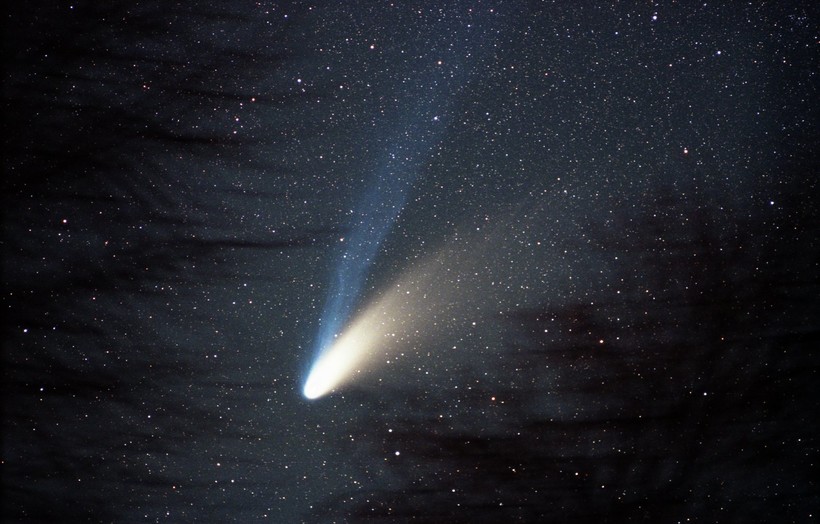 Если посмотреть на изображения комет, то сразу в глаза бросаются два шлейфа. Один бело-желтого цвета, а другой — сине-голубого. Первый называется пылевым, так как он состоит из мельчайших частиц пыли, которые отделяются от ядра. Этот хвост очень хорошо видно, даже если посмотреть на пролетающую комету без мощных приборов. Ионный хвост включает в себя ионы газов, что и придает ему синий цвет.