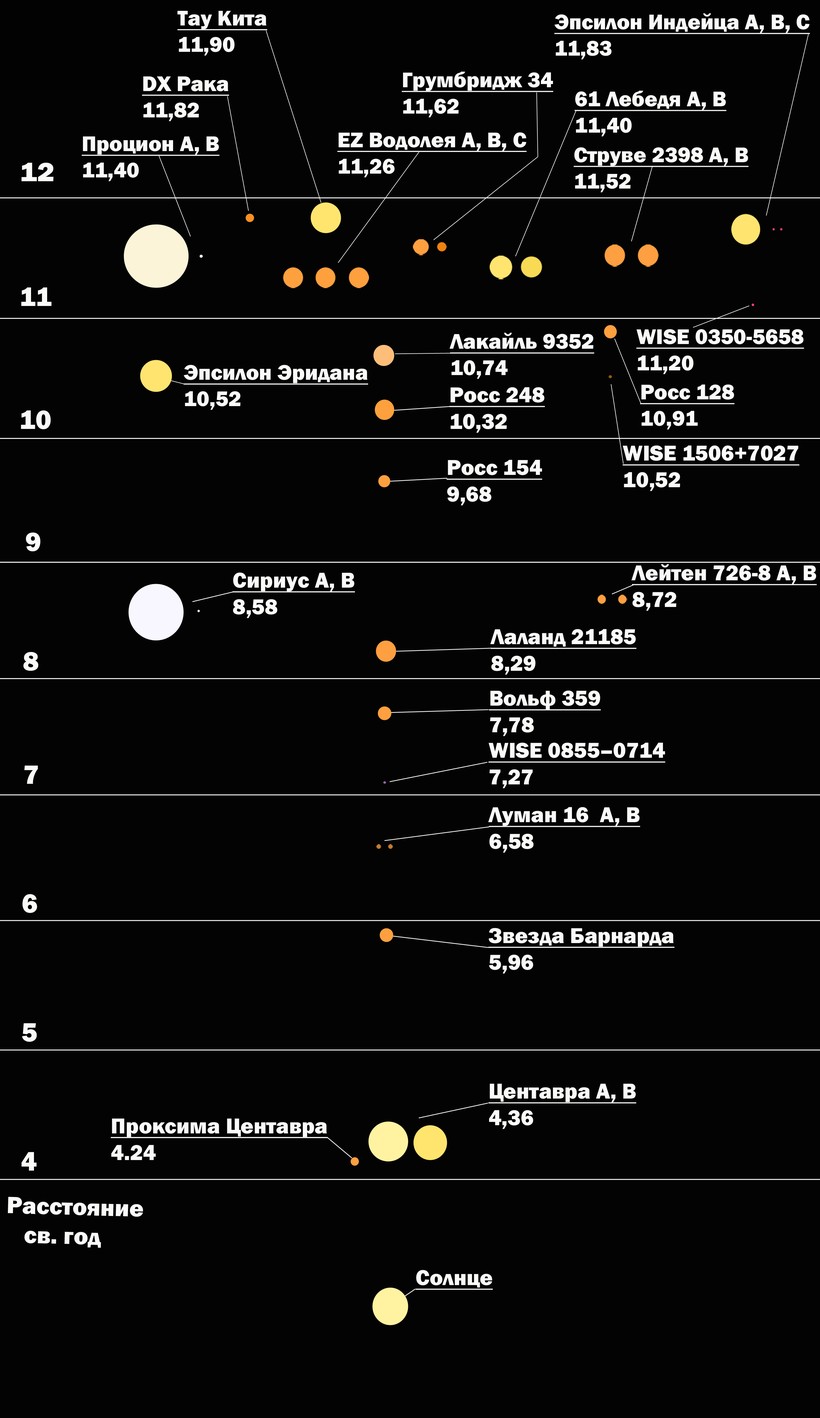 Если говорить о звездах, которые расположены максимально близко к нашей планете, то я могу привести вот такой список: