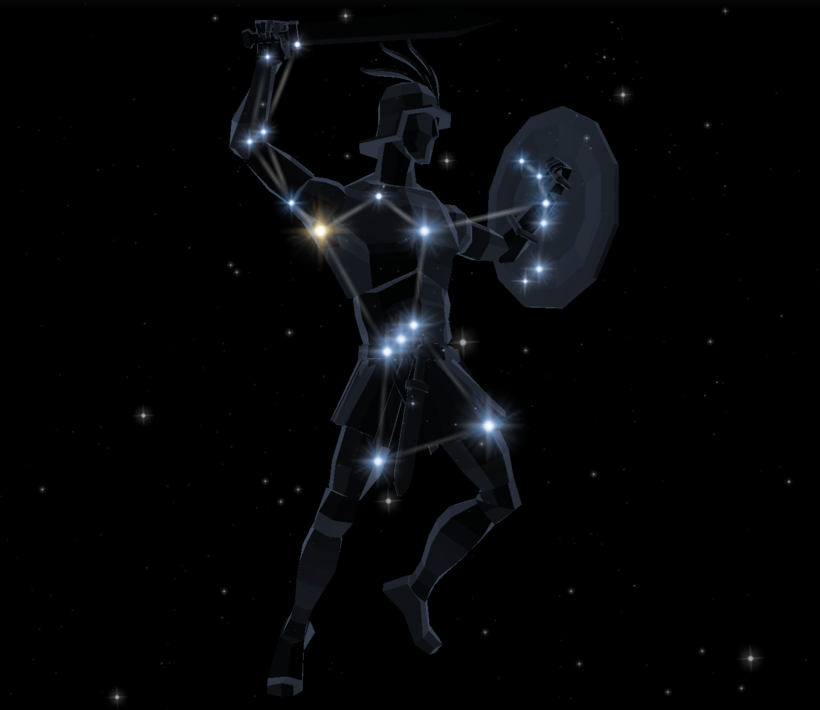 - Орион (легко отыскать по трем звездам на одной линии. Это пояс Ориона - Минтака);