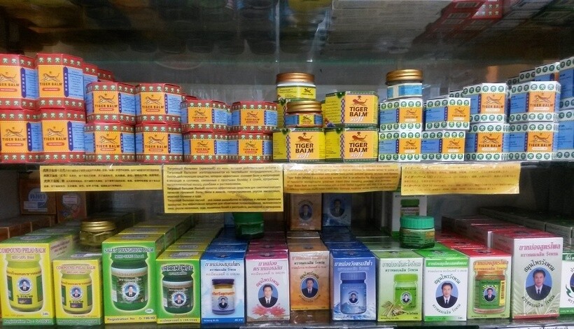 - Tiger balm («Тигровый бальзам»). Он снимает отечность, помогает от болей в мышцах и суставах, обладает успокаивающим эффектом.
